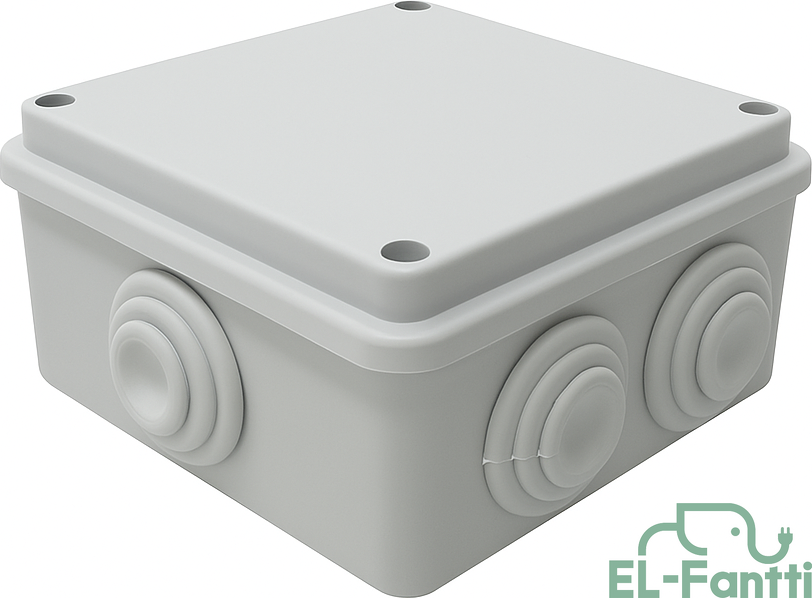 RAL 7035 (harmaa) ABS Materiaali Halogeenivapaa GWT 650 ᵒC Käyttölämpötila -25C - +60C IK 10 IP-luokitus 54 100x100x50mm