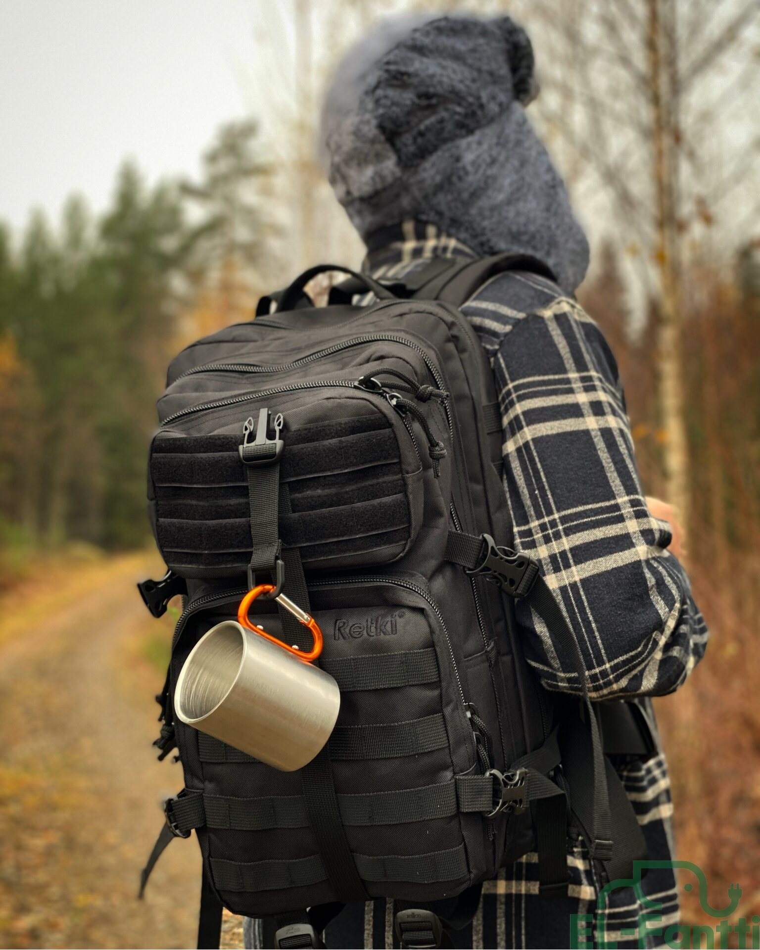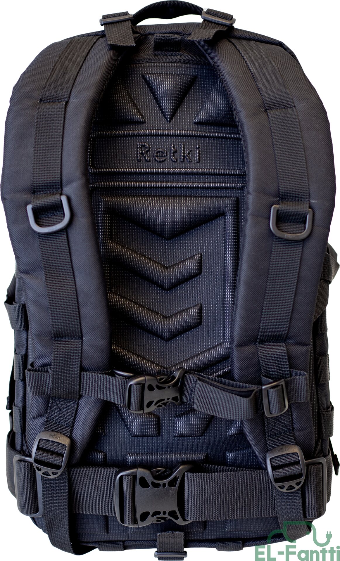 kiinnitysvaihtoehtoja lukuisia, mm. Molle-kiinnityksiä sekä remmejä