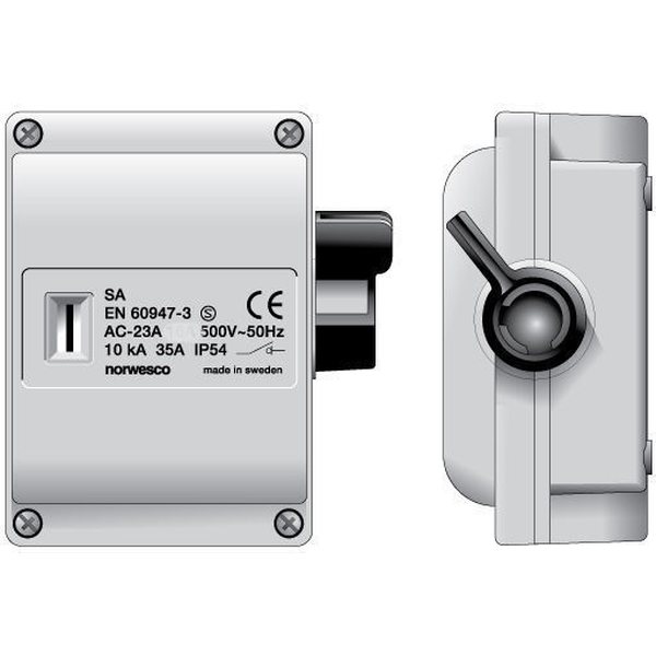 Sivusta väännettävä polykarbonaattikoteloitu Norwescon turvakytkin.