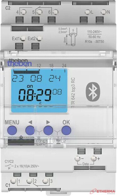Theben TR 642 top3 BLE RC Digitaalinen kellokytkin vuosi- ja astro-ohjelmalla, 2-kanavaa RC-malli