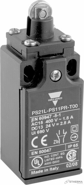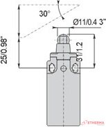 Sähkömekaaninen rajakytkin; rullatappilla; 30x30mm muovikotelo; Pakko ohjatut 1NO+1NC pikaliittimet; PG13,5 kaapeliläpivienti; IP65; -25 - +70C käyttölämpötila