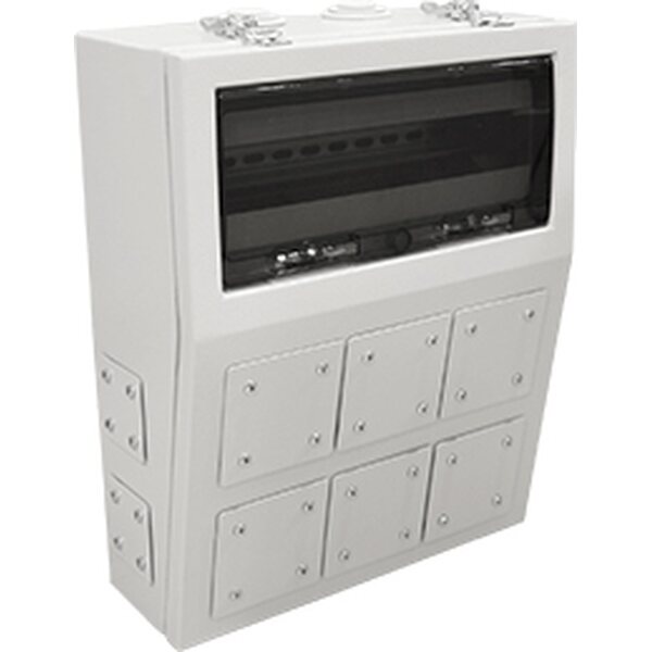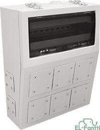 Metallinen pistorasiakotelo, jossa mukana1 kpl 5P 16A voimapistorasia ja 4 kpl 2P schuko. Kotelointiluokka IP54.