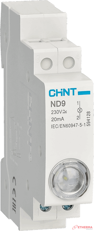 Väri: Valkoinen Sähköiset arvot: 230V AC/DC, 20mA, 50/60 Hz Nimelliseristysjännite Ui: 500 V Kotelointiluokka: IP20 Elinikä: LED 30 000 h
