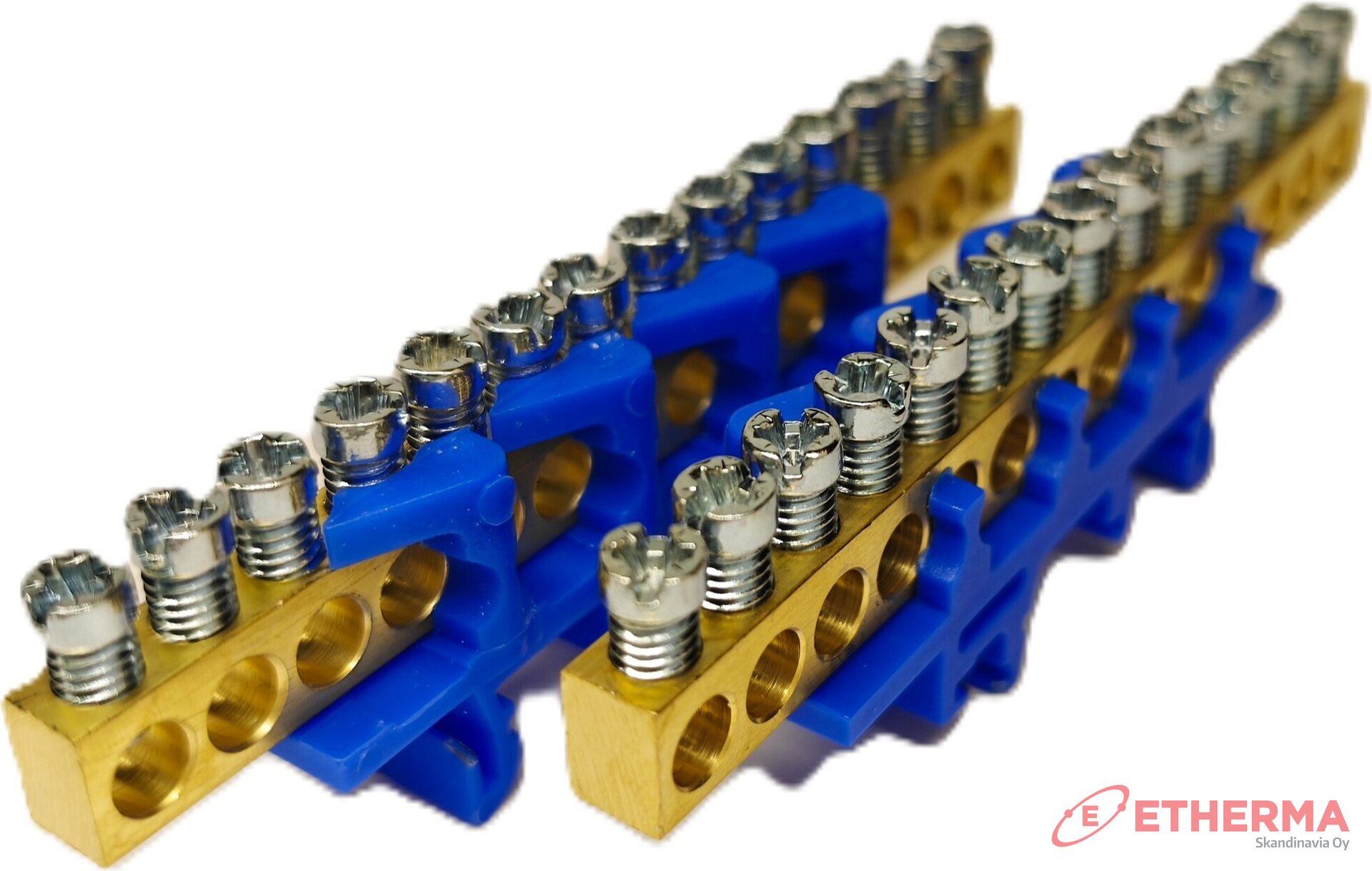 N-kisko ruuviliittimillä. DIN-kisko asennus.